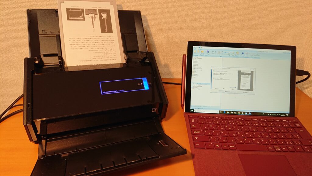 Surface Proはノートパソコンでもあるため、画像のようにスキャナーをSurface Proにつないで自炊をすることができます。