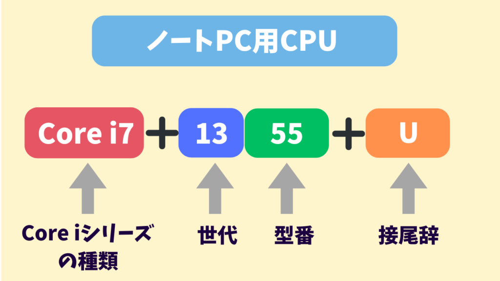 CPUの性能の違いは接尾辞のアルファベットで確認することができます。